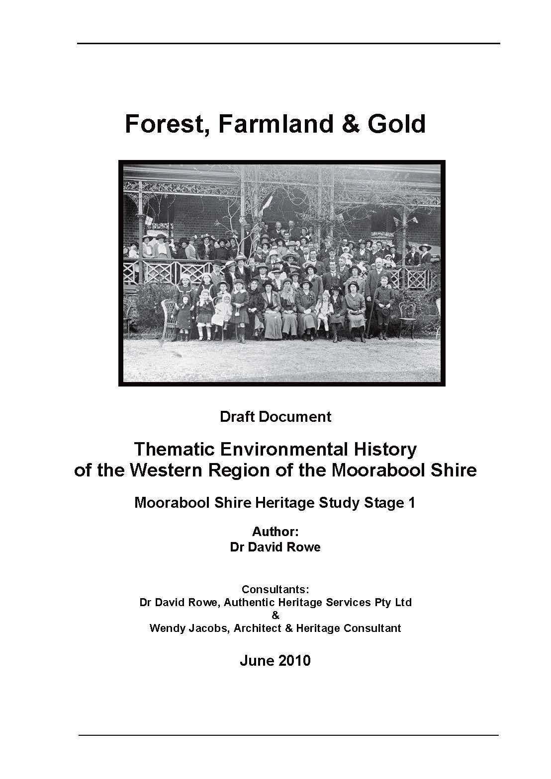 Farmland, Forest & Gold: Environmental History of the Moorabool Shire, Moorabool Shire Council, 2016. This Thematic History forms part of the Moorabool Shire Heritage Study Stage 2A, and it documents the important themes associated with the evolution and development of the western region of the Shire.